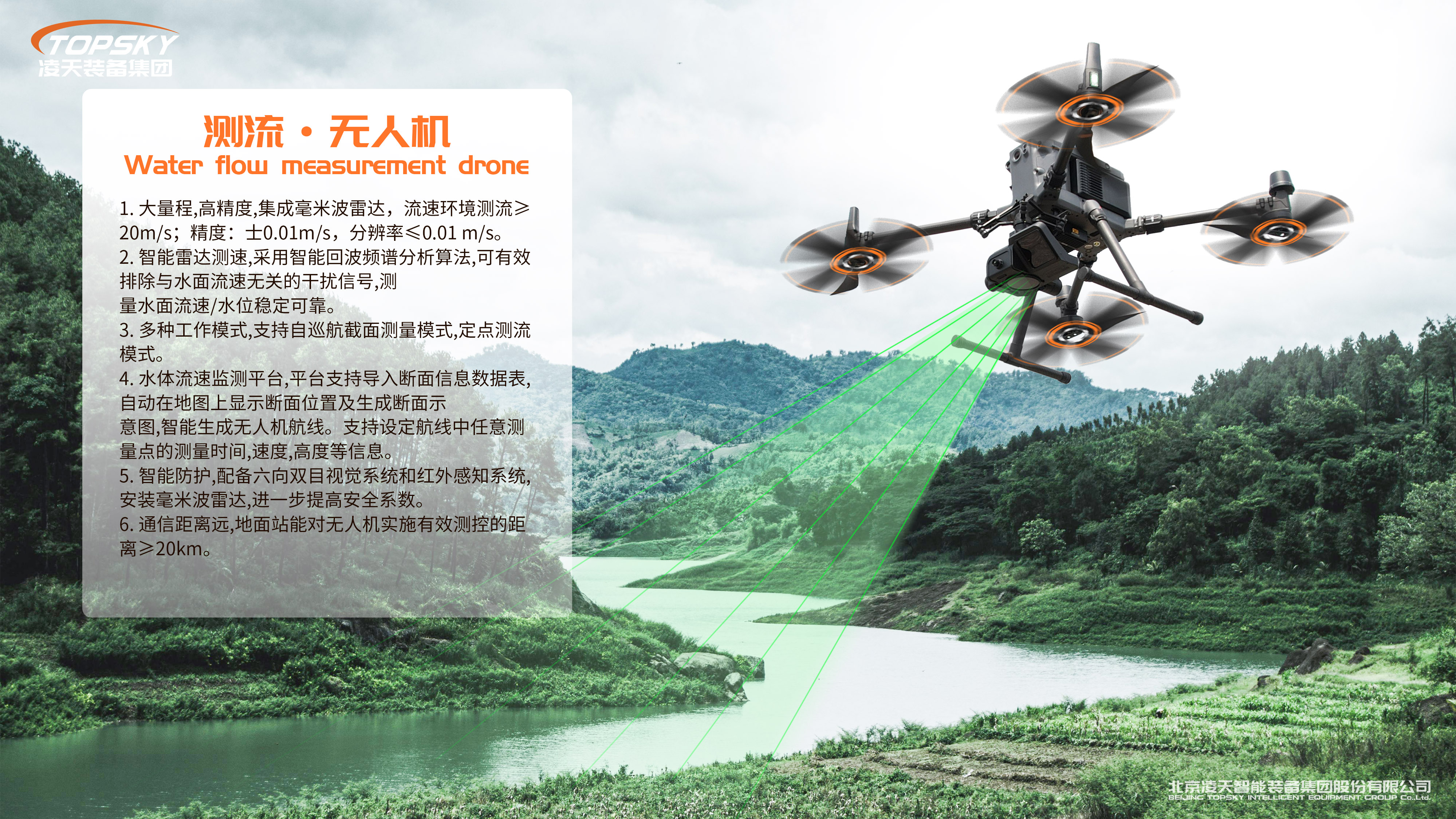 測流無人機(jī)具備水體流速、流量監(jiān)測等系統(tǒng);用于暴雨洪水流動(dòng)速度,特別是堤防潰口水流速度的快速探測。具備無人機(jī)水體流速、流量的監(jiān)測系統(tǒng),流速環(huán)境測流≥20m/s。