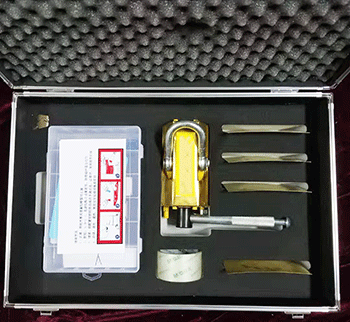 表面采用防爆鋁青銅材質(zhì),內(nèi)部利用超強(qiáng)永磁體對(duì)鋼鐵容器的吸附力,通過操縱手柄控制工作面上的磁通量,吸住泄漏的有磁金屬表面,達(dá)到工具和泄漏本體之間的壓合和釋放。仿形壓片,是在墊在磁壓堵漏器本體與泄漏口之間的薄板,用它可彌補(bǔ)二者之間的空隙,減小磁阻,改善堵漏膠的分布狀態(tài)??焖俣侣┠z調(diào)均勻后堆向泄漏口,同時(shí)扳動(dòng)通磁手柄,可阻止內(nèi)壓液體流出,讓膠體有時(shí)間凝固,數(shù)分鐘內(nèi)膠固化后,堵漏即告完成。堵漏膠和密封劑能承受水、油、液化氣、30%硫酸、30%鹽酸、氫氧化鈉、飽和氯化鈉溶液的侵蝕。