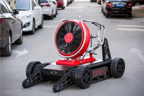 消防排煙偵察機器人采用履帶+擺臂+輪式的底盤設(shè)計,裝配大功率水驅(qū)動排煙機。水霧噴射裝置,形成霧化效果。消防排煙機器人在救援當中可深入災(zāi)害現(xiàn)場執(zhí)行排煙降塵、冷卻、送風、降低熱輻射等多種作業(yè)。