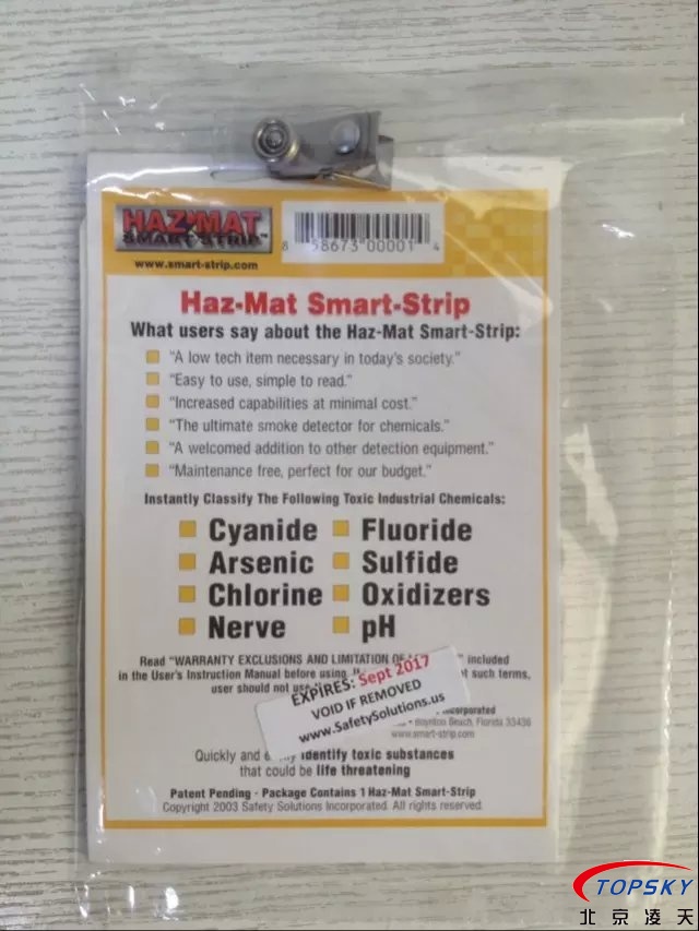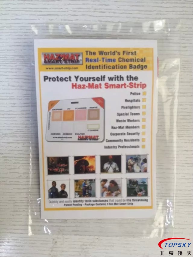 l 經(jīng)特殊設計的指示貼片可檢測到多達八種化學成分包括氯氣,氟化物,神經(jīng)毒氣,氧化劑,砷,硫化氫,氰化物,酸堿度;
