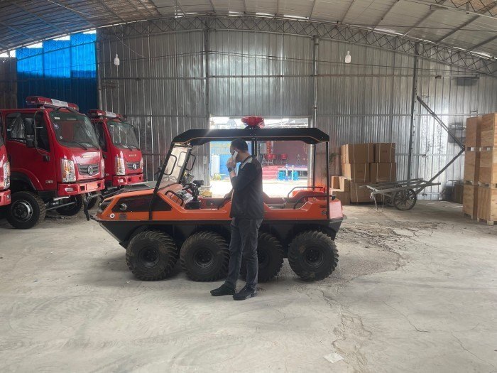 當(dāng)火災(zāi)出現(xiàn)時(shí),在復(fù)雜地形和環(huán)境下,沒有時(shí)間等待重型救援裝備能順利及時(shí)到達(dá)現(xiàn)場。水陸兩棲全地形車可立刻準(zhǔn)備好,部署消防人員,使用車上搭載的噴霧和泡沫設(shè)備在現(xiàn)場抑制火源。配備同樣的裝備來保護(hù)火災(zāi)易發(fā)地區(qū),風(fēng)險(xiǎn)防范于未然。