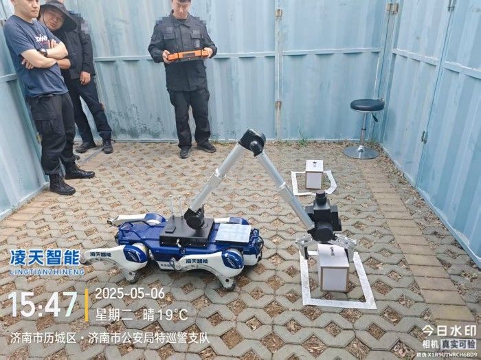 6自由度排爆機械臂能實現(xiàn)不同角度旋轉(zhuǎn),最大可抓舉10kg的重物,機械臂裝載爆炸物銷毀器,可現(xiàn)場摧毀爆炸物,四足式底盤,能適應各種地形快速作戰(zhàn)部署。