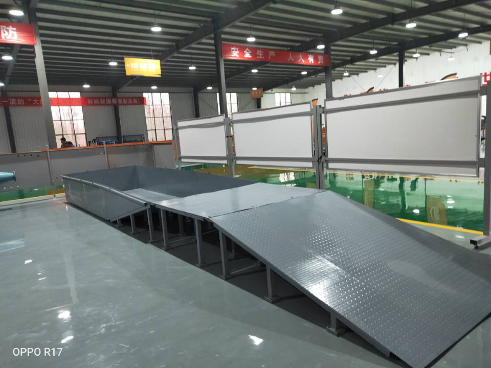 特種機(jī)器人涉水性能檢測裝置可用于各種特種機(jī)器人涉水性能測試。表面烤漆,整體防銹。整體底面都有方管加固框,堅固耐用。整體設(shè)計可拆卸,便于運(yùn)輸。上下坡面均為防滑板,能有效防止在測試完成后測試體駛出時因坡面潮濕而出現(xiàn)打滑現(xiàn)象,安全性強(qiáng)。水箱尾端底面有兩個排水口,排水速度更快。