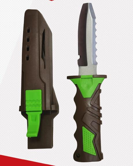 總長度25cm(含刀鞘全長),刀刃長度15m(不含握把長度),帶快卡扣,兩條橡膠腿綁帶,硬塑料刀鞘,單刃帶7齒鋸,刀刃帶鉤口,手柄帶護口,塑料成型外嵌橡膠把手,刀刃材料為不銹鋼。