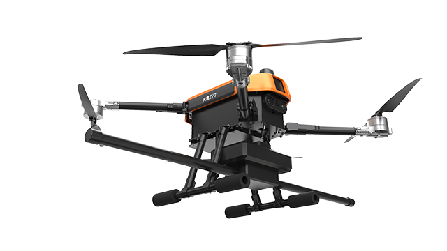 本無(wú)人機(jī)為北京凌天智能裝備集團(tuán)研發(fā)的陸空兩棲航磁探測(cè)無(wú)人機(jī),采用四旋翼機(jī)身設(shè)計(jì),載重大,續(xù)航長(zhǎng),并且機(jī)體折疊標(biāo)準(zhǔn)化負(fù)載接口。同時(shí),該無(wú)人機(jī)具備陸空兩棲功能,可以在地面行駛,行走系統(tǒng)可快拆。