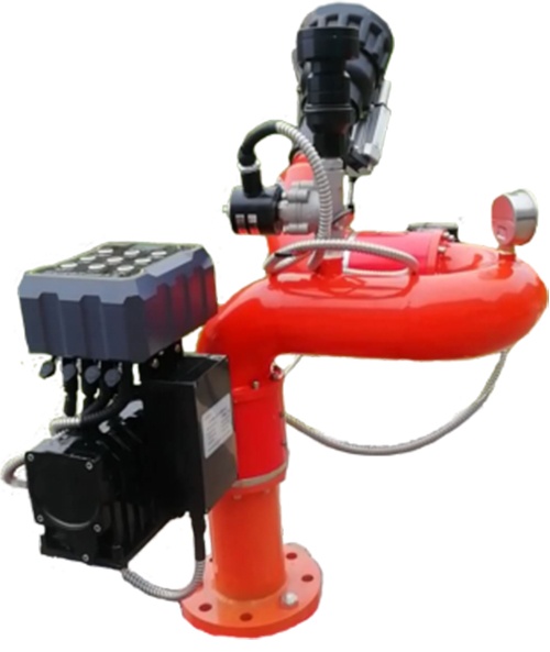 水炮頭的最大霧化角度可達(dá)120°,使得水炮的霧化噴射范圍更大,為大面積給火場降溫提供了更大幫助,同時(shí),霧化的水霧顆??梢钥焖倨艚^火場周圍的空氣,達(dá)到切斷燃燒要素快速滅火的目的